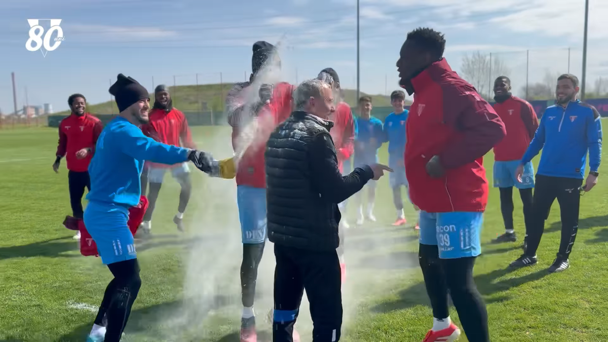 Mircea Rednic, sărbătorit cu făină și ouă crude de jucătorii lui UTA