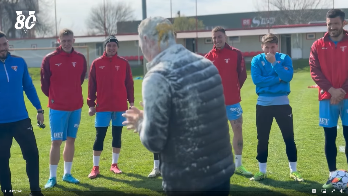 Mircea Rednic, sărbătorit cu făină și ouă crude de jucătorii lui UTA