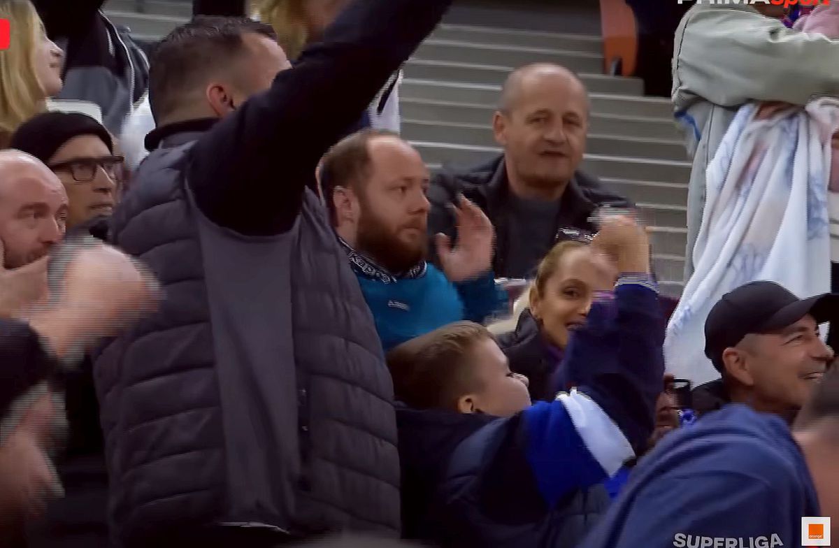 Imediat după ce Tănase a reușit să marcheze în minutul 37, camerele TV s-au mutat pe tribune, acolo un tată se bucura alături de un copil de reușita roș-albastră. Micuțul s-a repezit să le arate degetele mijlocii celor de la Craiova, în mijlocul bucuriei, spre amuzamentul celor din jur.