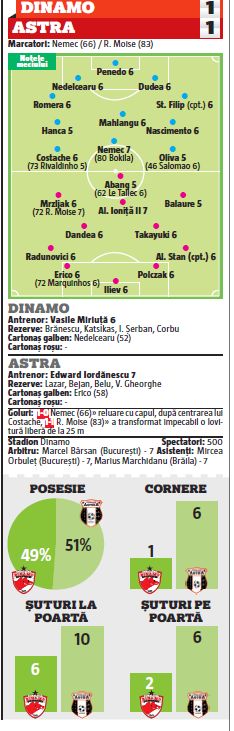 Citește AICI cronica partidei Dinamo - Astra 1-1