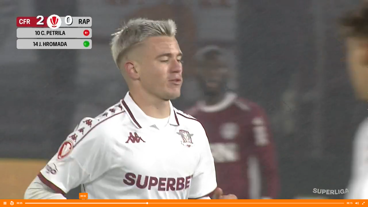 : Claudiu Petrila, nemulțumit după ce a fost schimbat în CFR - Rapid // FOTO: captură Orange Sport