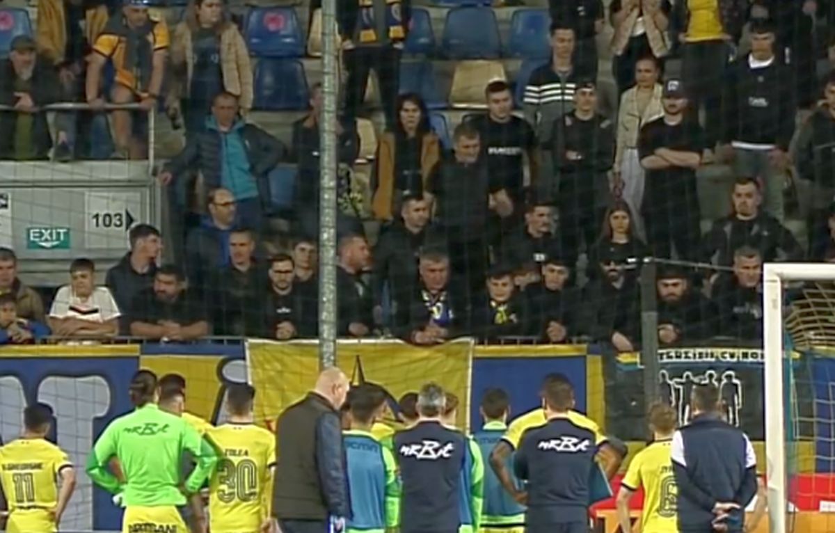 I-au „aliniat”! Ultrașii i-au mustrat pe jucători după primul meci din play-out
