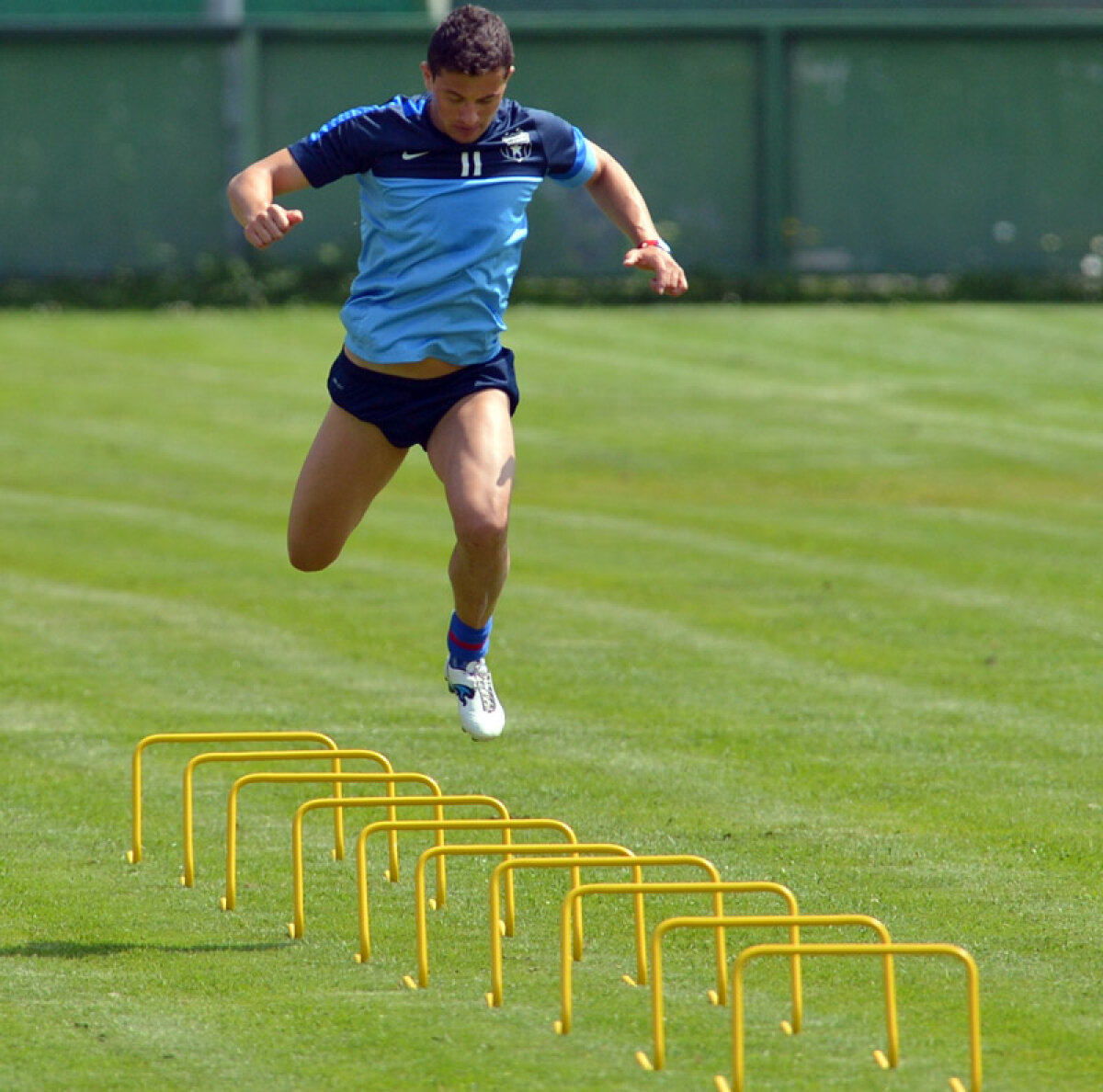 Prepeliţă sare într-un picior peste gărduleţe, apoi trece rapid printre jaloane flexibile şi aleargă ritmat în jurul a două copete. Latovlevici nu se plictiseşte nici el. Îşi aşază cinci mingi în faţa unei porţi, la cinci metri una de alta şi le loveşte pe rînd, să cadă direct în plasă. Primele patru lovituri îi ies, ultima se duce mult peste. Ţipă de nervi, dar şi distrat de joc.