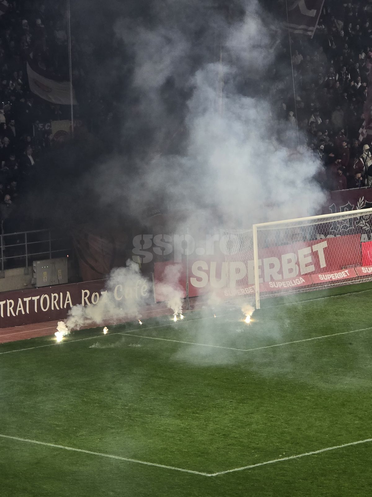 : Suporterii de la Rapid au aruncat din nou cu petarde și fumigene în teren/ Foto: GSP