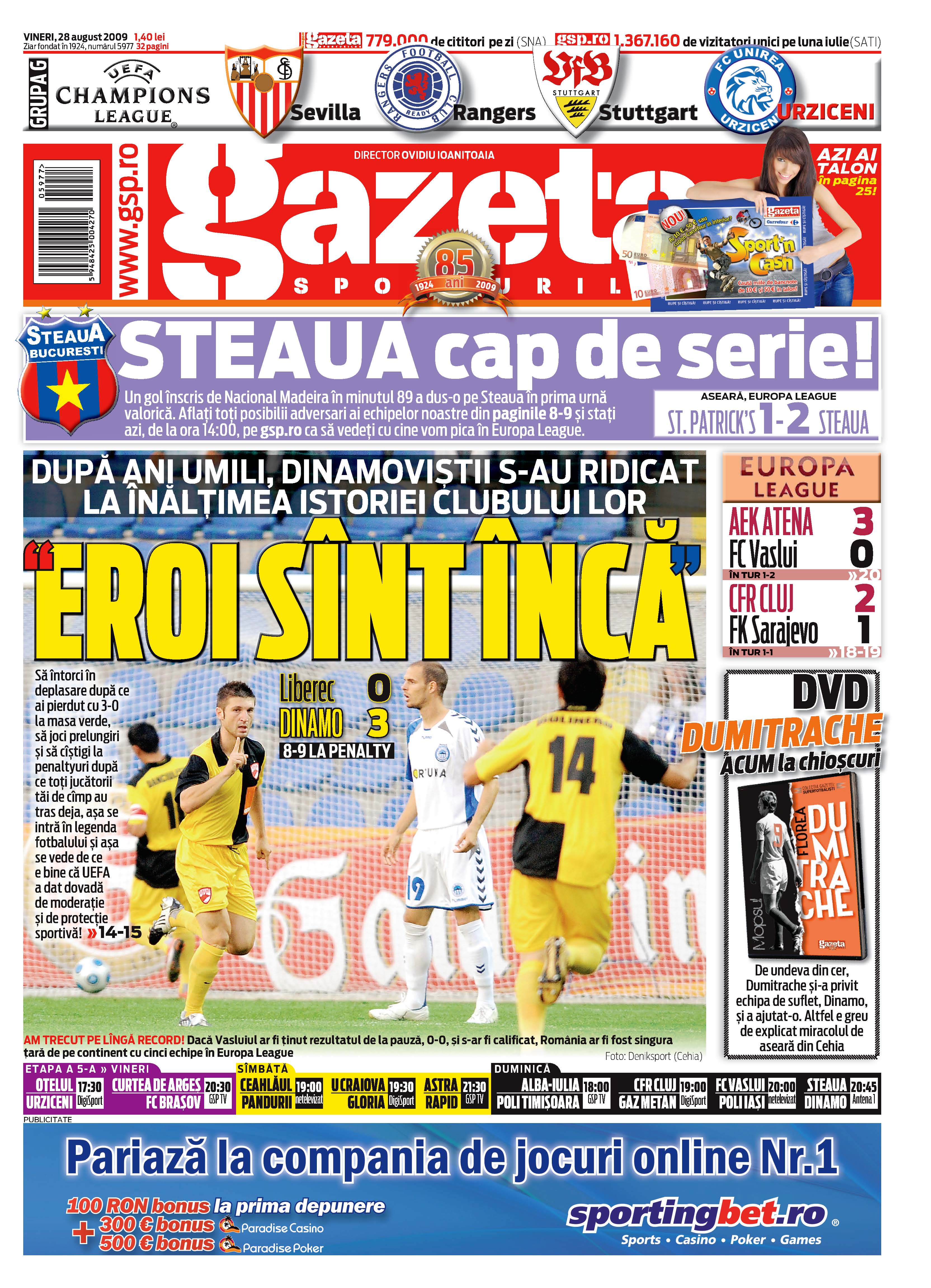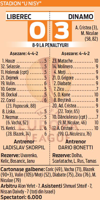 Pe 27 august 2009, Dinamo reușea să se califice în grupele Europa League după o revenire incredibilă în "dubla" cu Slovan Liberec.