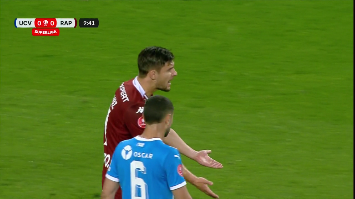 Conflict pe teren! Doi jucători de la Rapid s-au certat în timpul meciului cu Universitatea Craiova