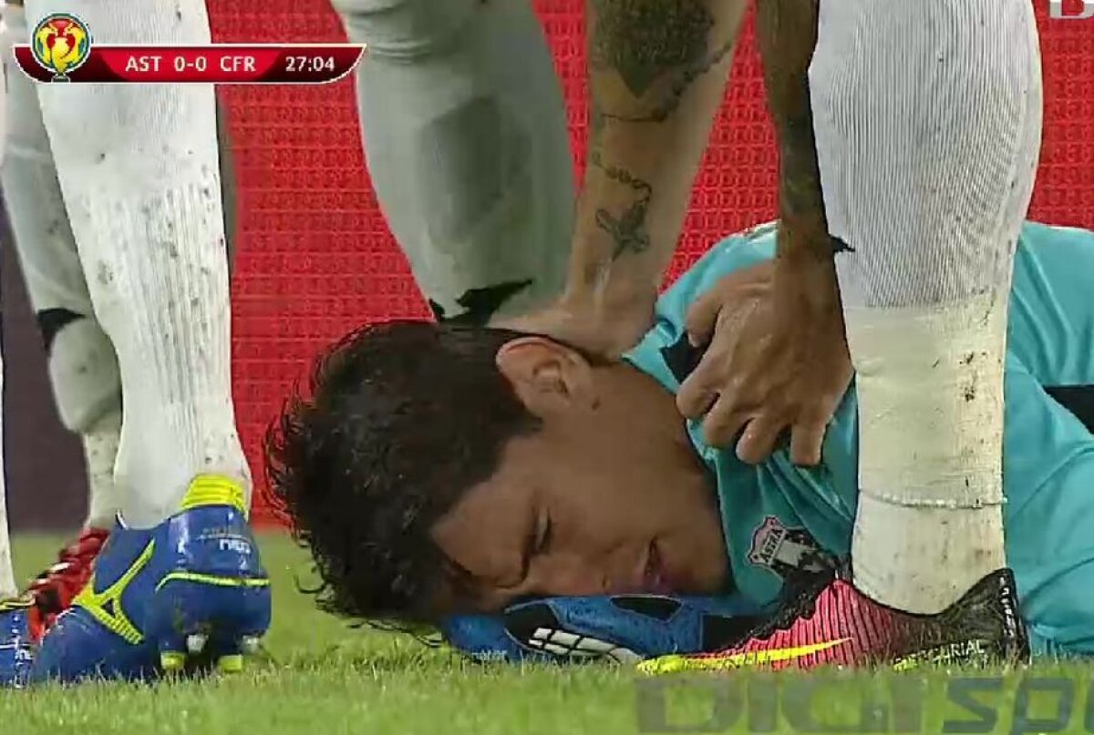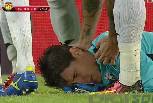 Portarul de 27 de ani al Astrei a ajuns de urgență la spital în timpul partidei pe care Astra a pierdut-o la Cluj cu CFR, 3-2. Acesta a fost lovit cu mingea în figură de Omrani, în minutul 19. Fiind comoționat, nu a mai putut continua partida.