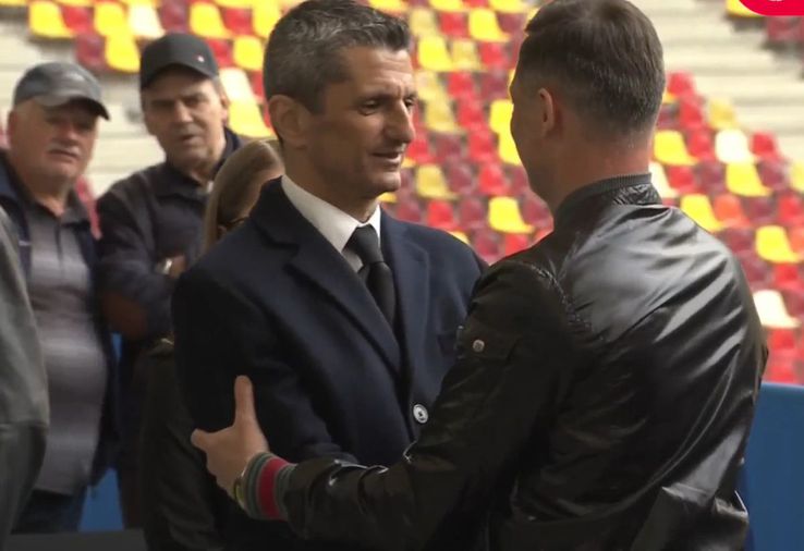 Primele persoane au început să intre pe stadion. Cei care au venit să-i aducă un omagiu lui Mircea Lucescu sunt salutați de Răzvan Lucescu și de Matei, fiul său.