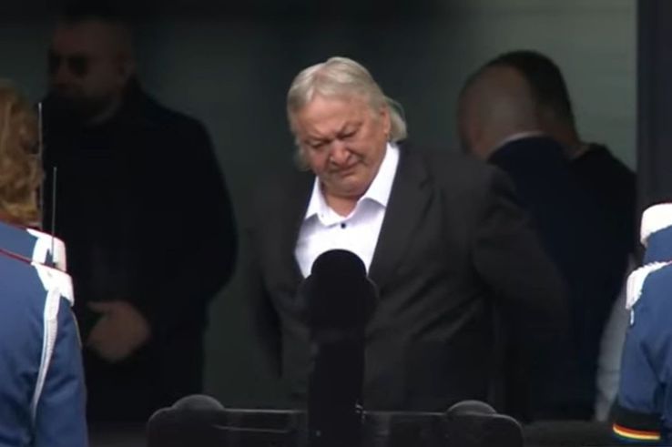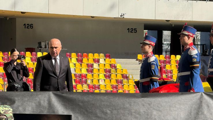 În jurul orei 10 va ajunge la stadion și premierul Ilie Bolojan. O coroană de flori din partea Guvernului e deja depusă lângă sicriu. Premierul va sosi, va sta câteva minute lângă familie, iar apoi va pleca.