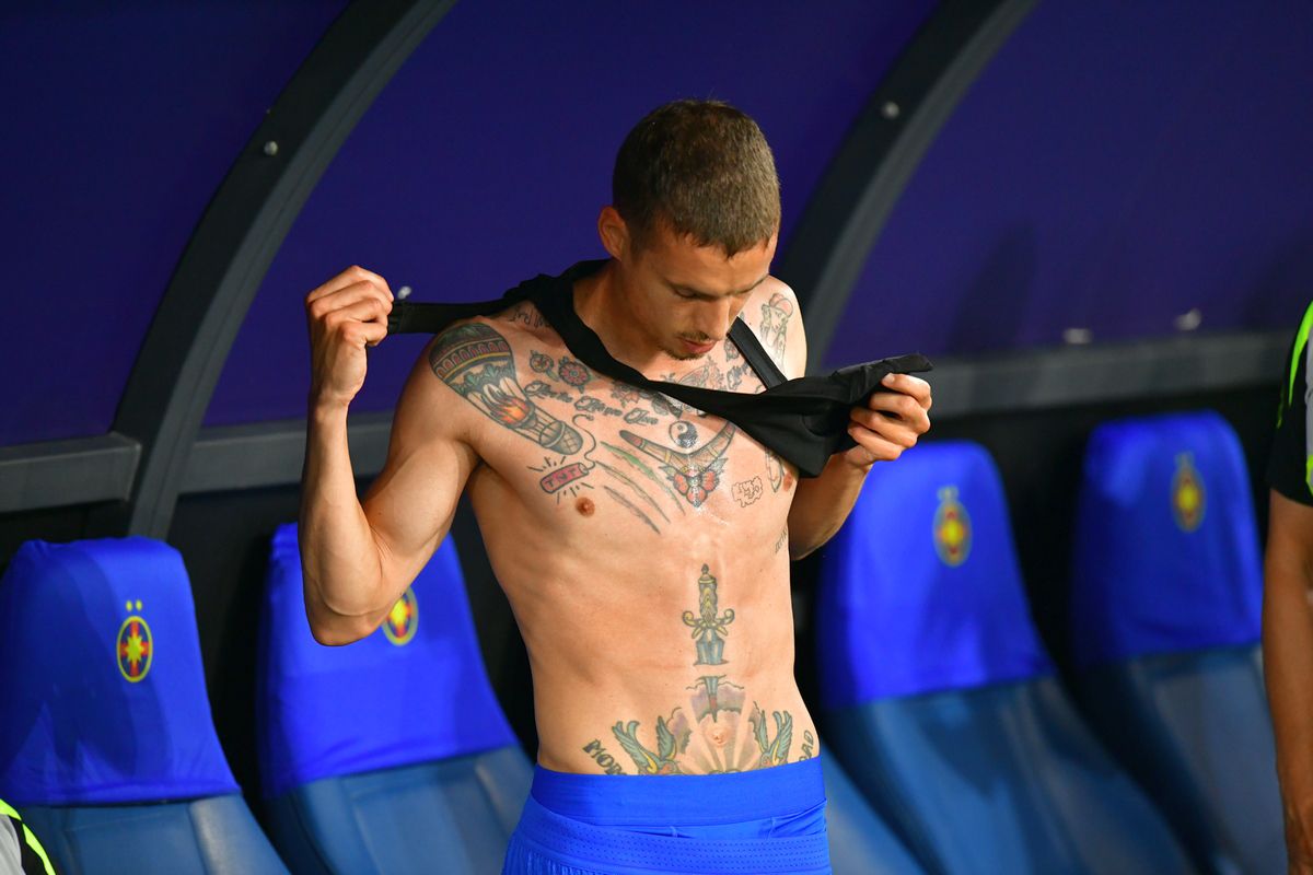 : Juri Cisotti și-a dezvăluit tatuajele de pe corp înainte să joace în meciul cu Hermannstadt. Foto: Cristi Preda (GSP.RO)