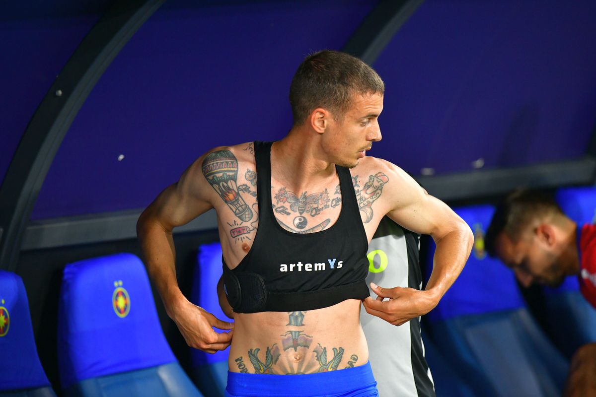 : Juri Cisotti și-a dezvăluit tatuajele de pe corp înainte să joace în meciul cu Hermannstadt. Foto: Cristi Preda (GSP.RO)