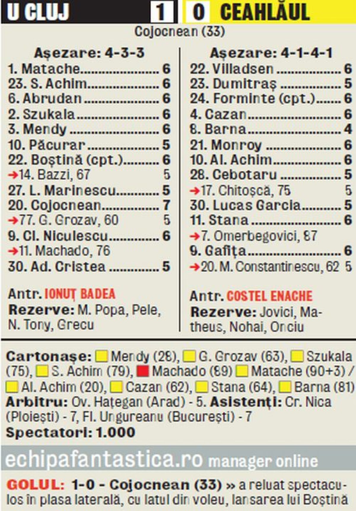 "U” Cluj a învins Ceahlăul în ultimul meci oficial pe stadionul din Mediaş » Suferinţă înainte de nuntă