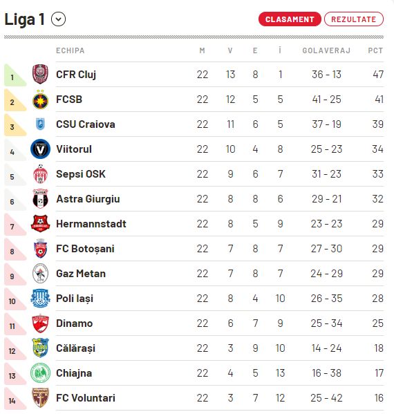 Clasament Liga 1