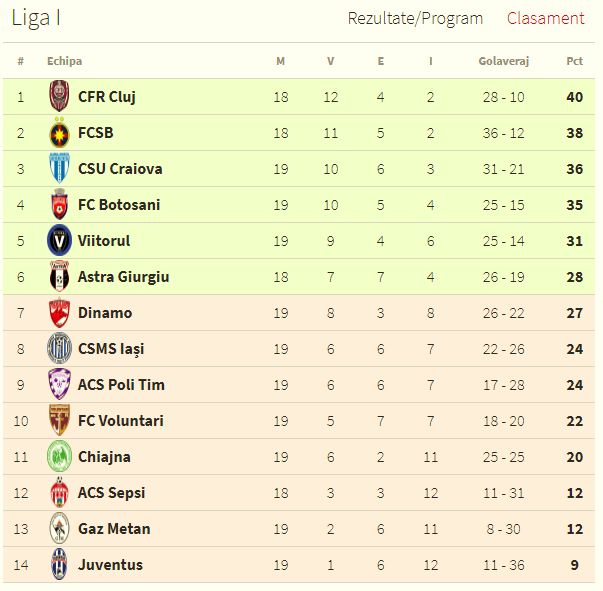 Gaz Metan rămâne pe locul 13, cu 12 puncte, în timp ce Voluntari ocupă poziția a 10-a, cu 22 de puncte.