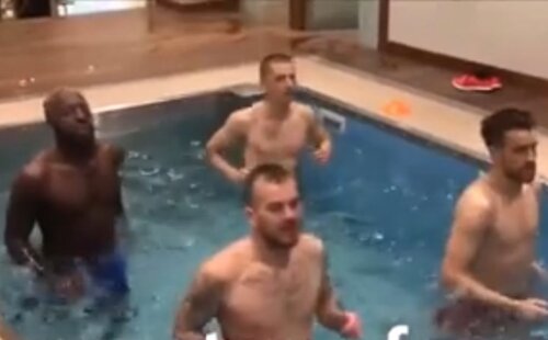 Înainte de acest exercițiu, jucătorii au pedalat din greu în sala de forță, unde au făcut antrenamente din cauza vremii.