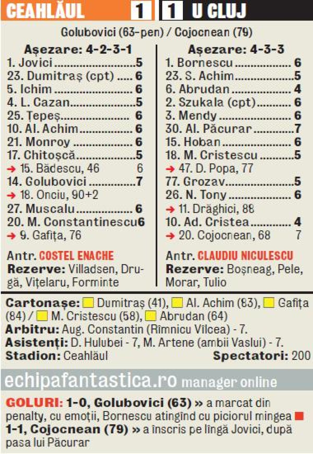 VIDEO Sanie cu zurgălăi » Ceahlăul şi U Cluj au terminat la egalitate pe un teren acoperit de zăpadă