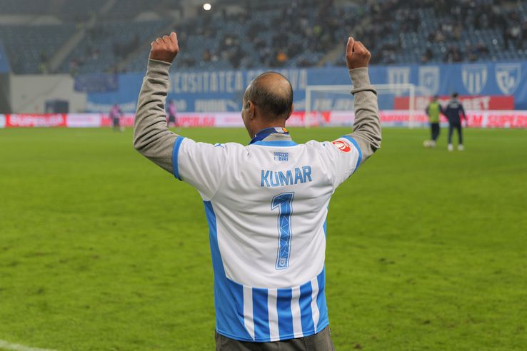La pauză, a pășit pe gazon pentru a fi ovaționat de spectatori. Cu tricoul și fularul echipei, Vipan a părut de-ai casei.