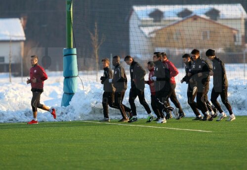 Miercuri, 14 ianuarie 2015. Pe terenul închiriat la Buftea, noul antrenor al Rapidului, Cristi Pustai, a împărţit lotul în două. 5 contra 2.