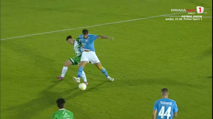 Fundașul central al celor de la FC Voluntari a primit cartonașul roșu după două trageri de tricou la faze aproape consecutive. „Centralul” Dan Buzărnescu i-a arătat cartonașele galbene în minutele 65 și 66.