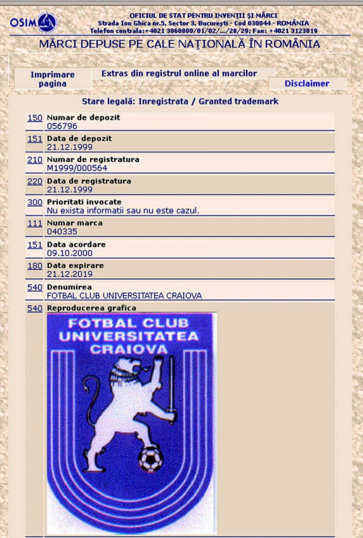 Pe site-ul fcuniversitatea.ro, sînt prezentate cele 4 mărci deţinute de Mititelu şi înregistrate la OSIM (Vezi foto sus).