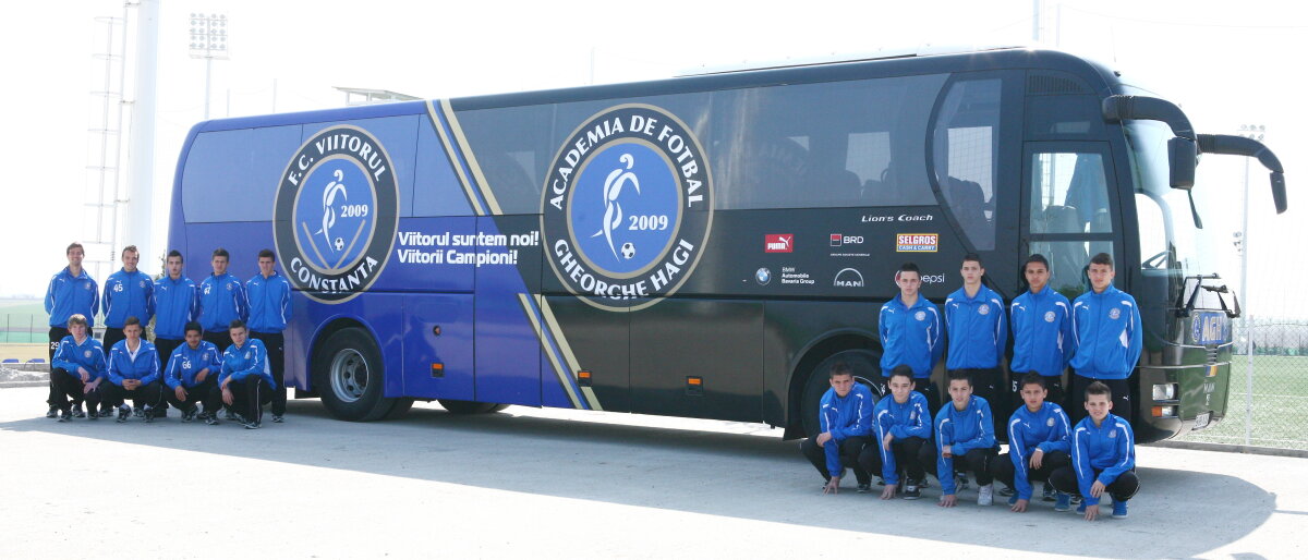 O parte din jucătorii Academiei de Fotbal „Gheorghe Hagi” s-au prezentat la sesiunea foto a autocarului oficial al Academiei susţinută chiar la complexul sportiv din Ovidiu.