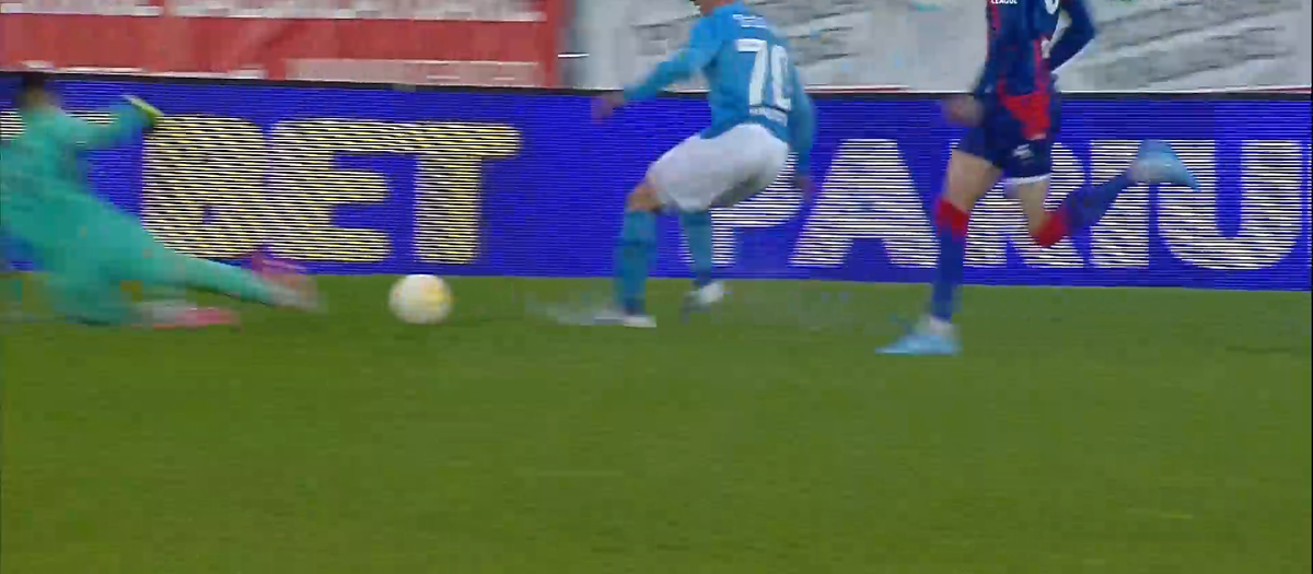 Foto 5/11 : Intrare dură a portarului de la Bihor, Edgar Cadar // Captură FOTO: Digi Sport 1