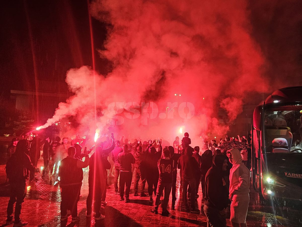 Nebunie la Pitești: au sărbătorit promovarea în ploaie, cu zeci de torțe!