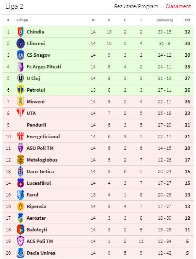 Clasament actualizat