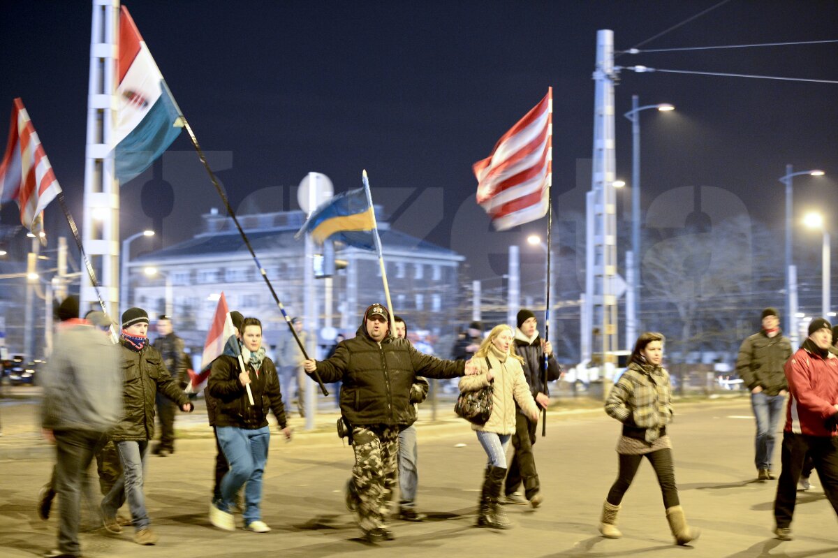 FOTO  Au încins atmosfera » Ungurii au luat cu asalt zona din apropierea stadionului