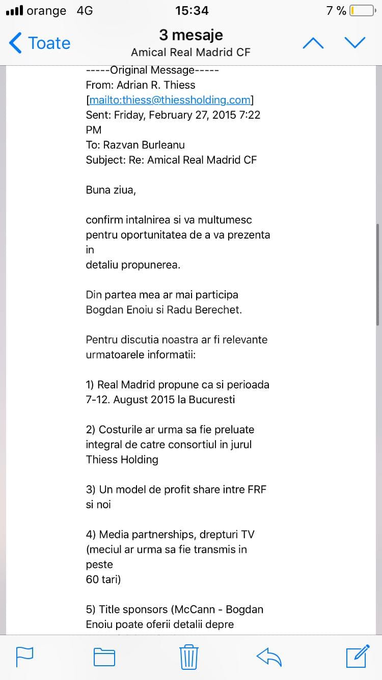 "Pe domnul Thiess l-am cunoscut pentru că, la un moment dat, a venit la FRF să propună un amical între naţionala României şi Real Madrid.