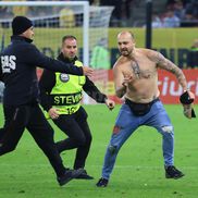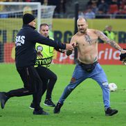 Bărbatul a păcălit vigilența stewarzilor și a intrat pe teren, unde a făcut un sprint de zeci de metri înainte să fie prins. Toată scena a fost surprinsă de reporterii GSP prezenți pe gazon.