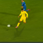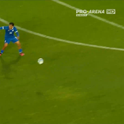 Minutul 67: Trică urmărește un balon trimis de Duțu în adâncime, însă ratează balonul în ultimul moment, chiar din fața portarului advers.