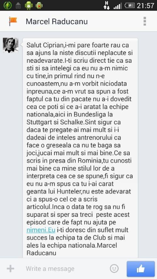 Contrele dintre Ciprian Marica şi Marcel Răducanu continuă. Fostul mare jucător al Stelei şi al Borussiei Dortmund s-a arătat deranjat de faptul că atacantul naţionalei României a publicat mesajul său pe contul de facebook.