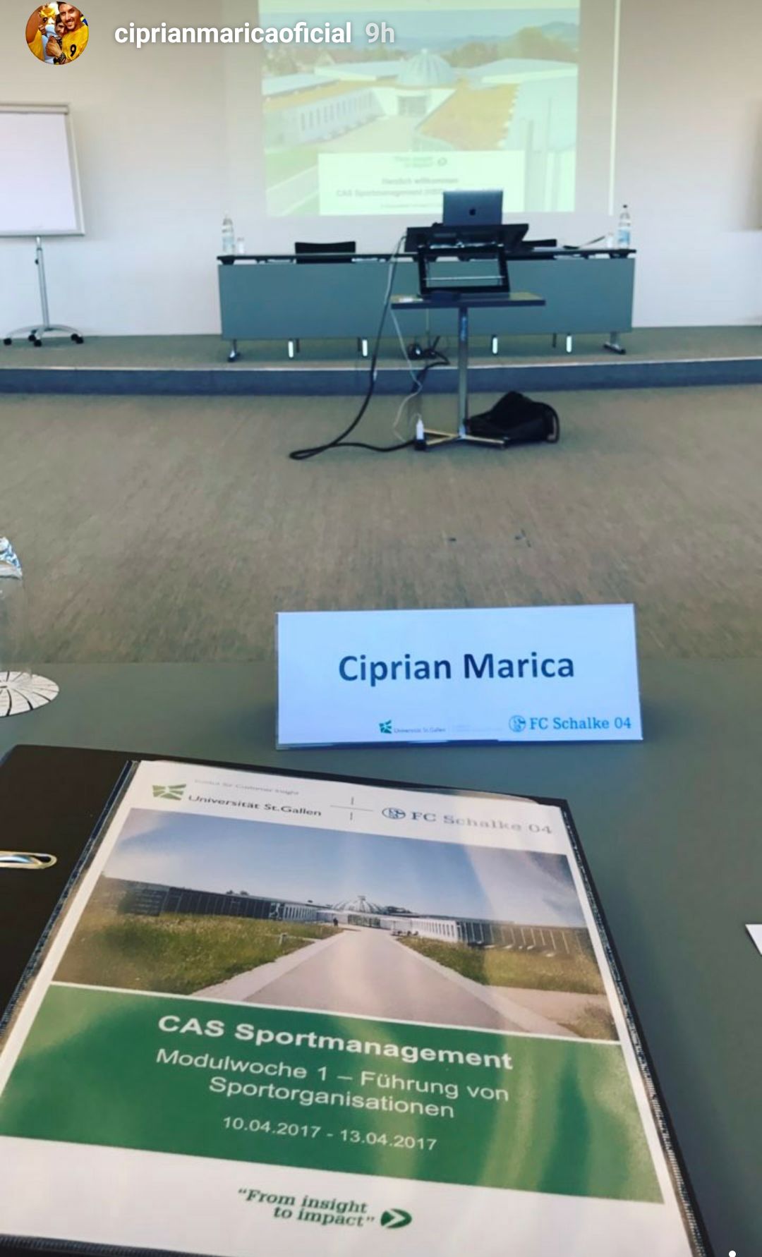 Fostul atacant a postat astăzi o fotografie de la cursul de Management Sportiv la care participă. Cursurile sunt susținute de Schalke, fosta echipă a lui Marica, și au loc la Universitatea din St. Gallen.