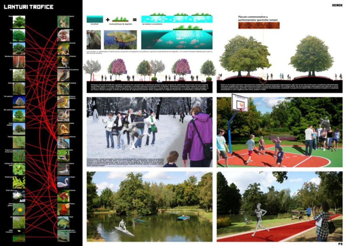 Atuurile arhitecţilor cîştigători au fost soluţiile de menţinere a vegetaţiei existente, ideea unui deal artificial cu funcţie de peluză, vara, şi pîrtie, iarna, şi a unor terenuri sportive publice. Premiul II, un program de training, şi premiul III, o placă video, au fost obţinute de doi studenţi la arhitectură, Miruna Pavoni şi Ciprian Mateescu.