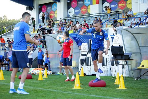 Fotbaliștii convocați de Cosmin Contra au început antrenamentul printr-o serie de alergări ușoare, trecând apoi și la exerciții specifice cu mingea.