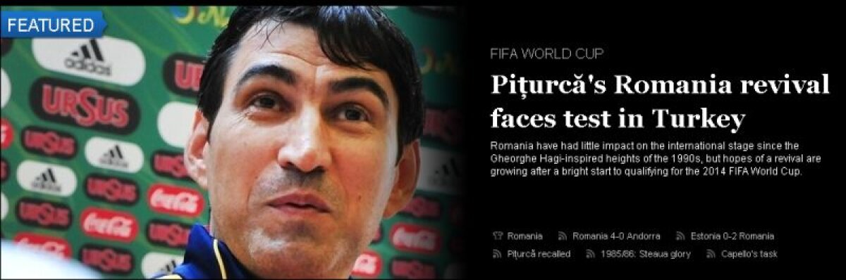 Victor Piţurcă este lăudat pentru renaşterea echipei reprezentative după ce tot el a calificat echipa la turneele finale EURO 2000 şi EURO 2008: "Piţurcă a fost paraşutat înapoi în scaunul de selecţioner în vara lui 2011 şi a pierdut de atunci doar două jocuri din 14 şi acelea amicale în deplasare cu Belgia şi Slovenia" arată siteul forului continental.