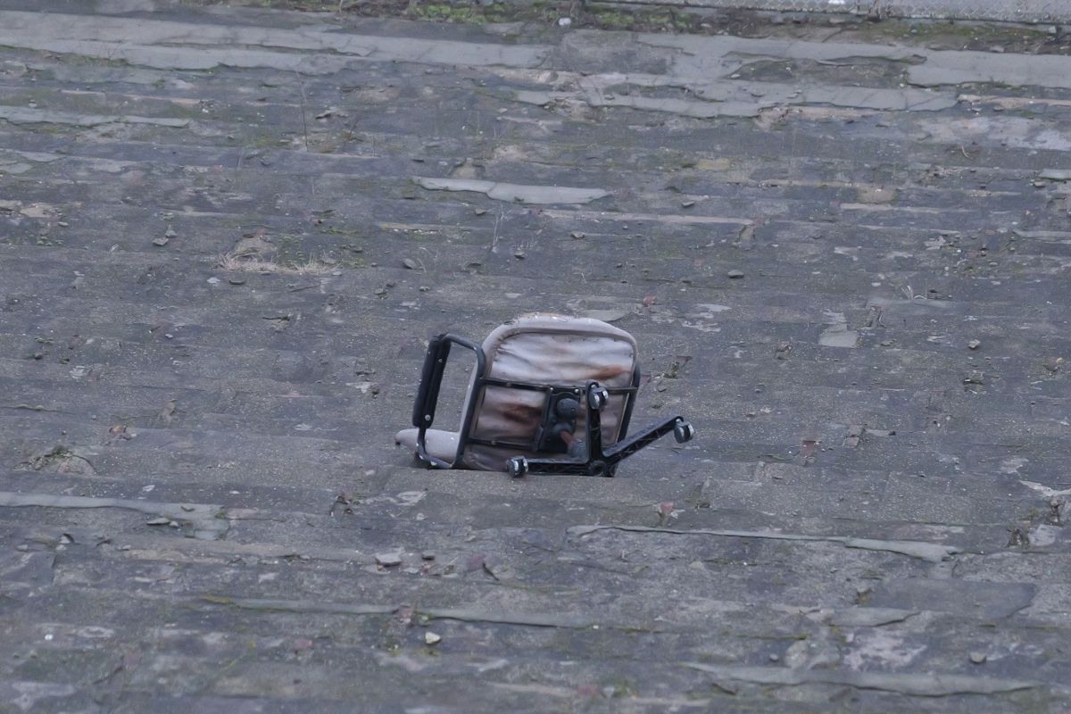 : Un scaun de birou, abandonat pe Stadionul Dunărea din Galați. Foto: Andrei Furnigă, GSP
