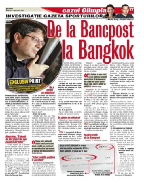 Doar în ediţia tipărită de astăzi, nu şi pe site, un interviu cu ministrul Tineretului şi Sportului, Nicolae Bănicioiu şi explicaţiile Mihaelei Neagu despre bileţelul în urma căruia soţia şefului din MTS a fost plătită vreme de 17 luni.