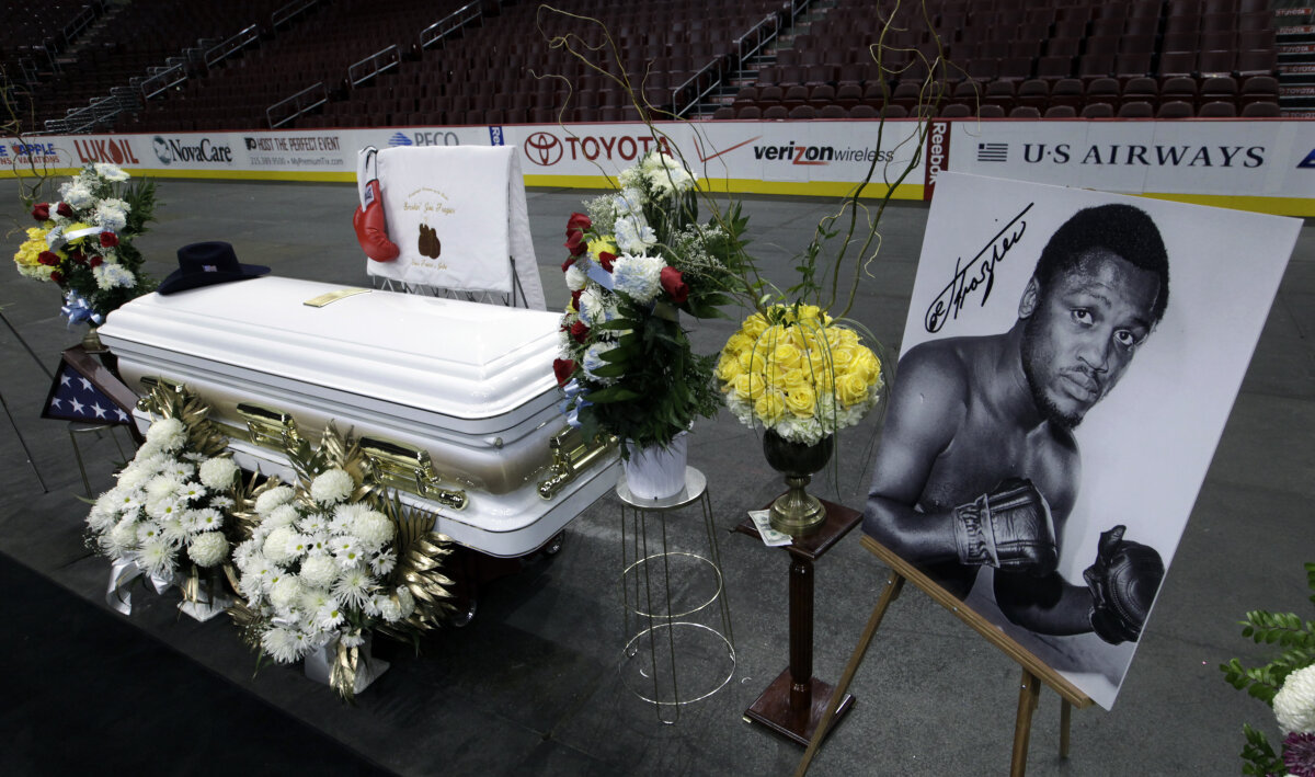 : O pălărie de cow-boy, afişul de la victoria asupra lui Muhammad Ali în '71 şi un drapel american au vegheat la căpătîiul lui Joe Frazier. Fostul campion al greilor va fi înmormîntat azi la Philadelphia