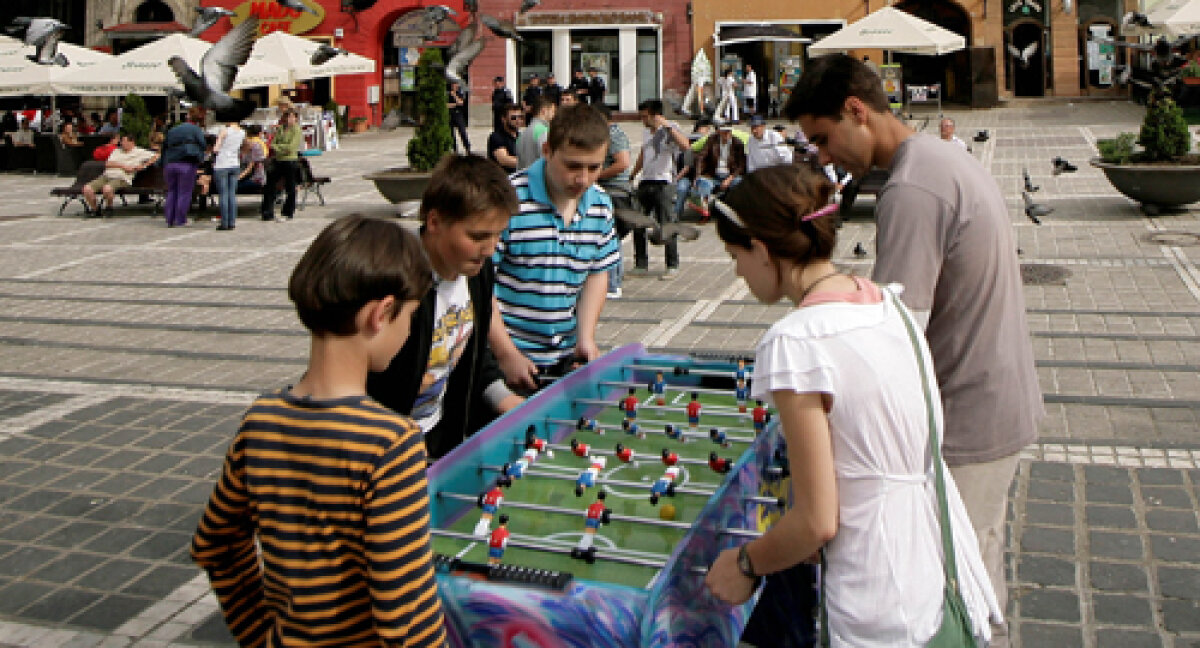 : În piaţă. Fotbal de masă şi porumbei Foto: Raed Krishan