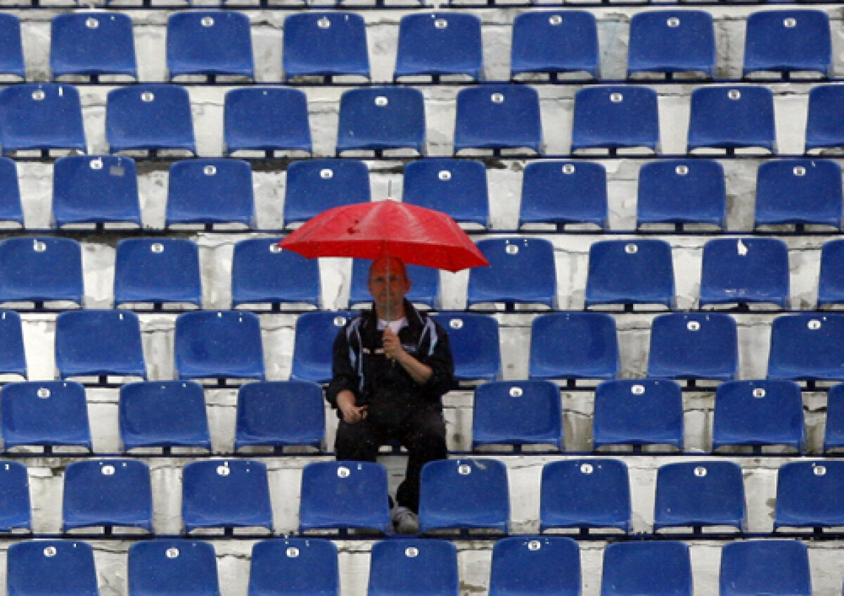 : Fidelitate. Un suporter rămas singur în tribună şi în ploaie Foto: Lorand Vakarcs