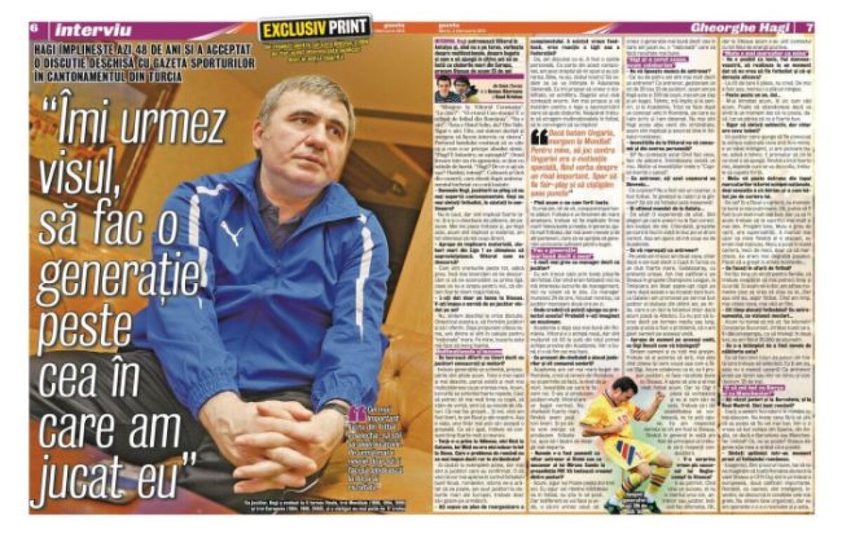 Hagi împlineşte azi 48 de ani şi a acceptat o discuţie deschisă cu Gazeta Sporturilor în cantonamentul din Turcia.