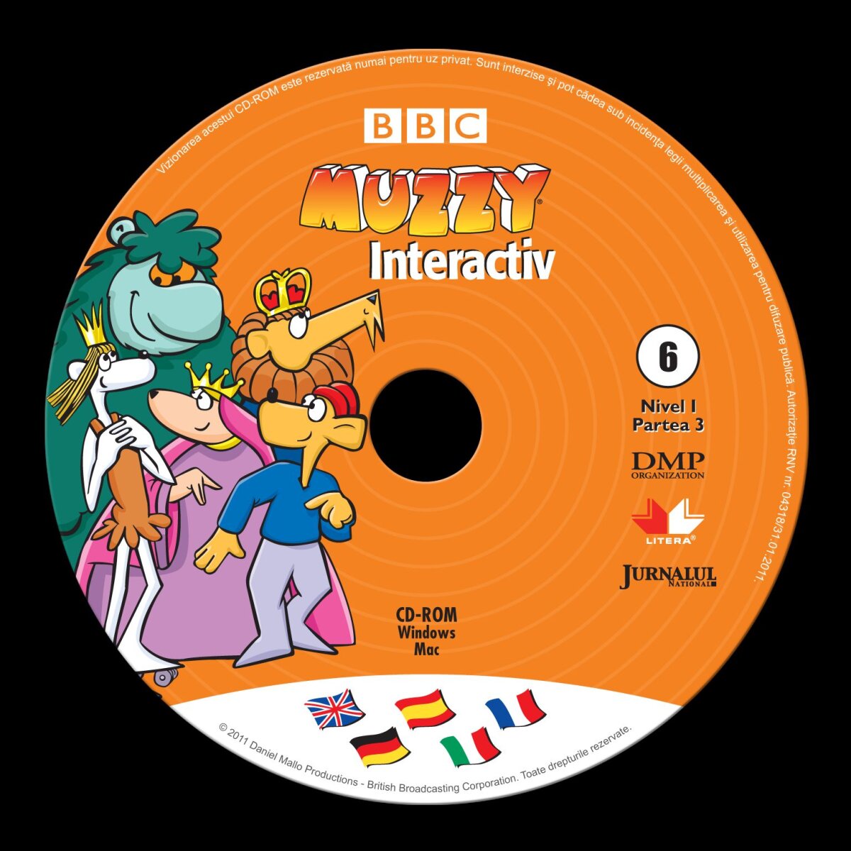 Din volumul al 6-lea al colectiei Muzzy invatam partile corpului si culorile.Totodata ne vom juca si vom invata multe exercitii fizice... Cursul multilingvistic cuprinde: 15 carti cu DVD, care prezinta o poveste antrenanta cu personaje simpatice, sustinuta de desene animate si de un vocabular cu peste 500 de cuvinte uzuale în fiecare limba. MUZZY interactiv cuprinde 15 carti cu CD: peste 1 000 de exercitii şi de jocuri pe calculator. Timp de 30 de saptamani, in fiecare vineri, Jurnalul National va fi insotit de... Muzzy! Pretul unui volum va fi de 14,9 RON.