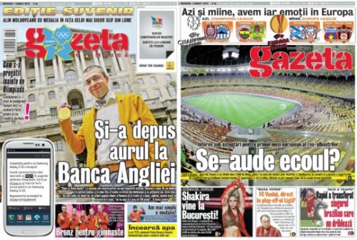 Pînă la încheierea Jocurilor Olimpice de la Londra, ediţia tipărită a Gazetei Sporturilor are două coperţi în fiecare ziar. Prima parte a ziarului e dedicată exclusiv Olimpiadei, iar ultima fotbalului!