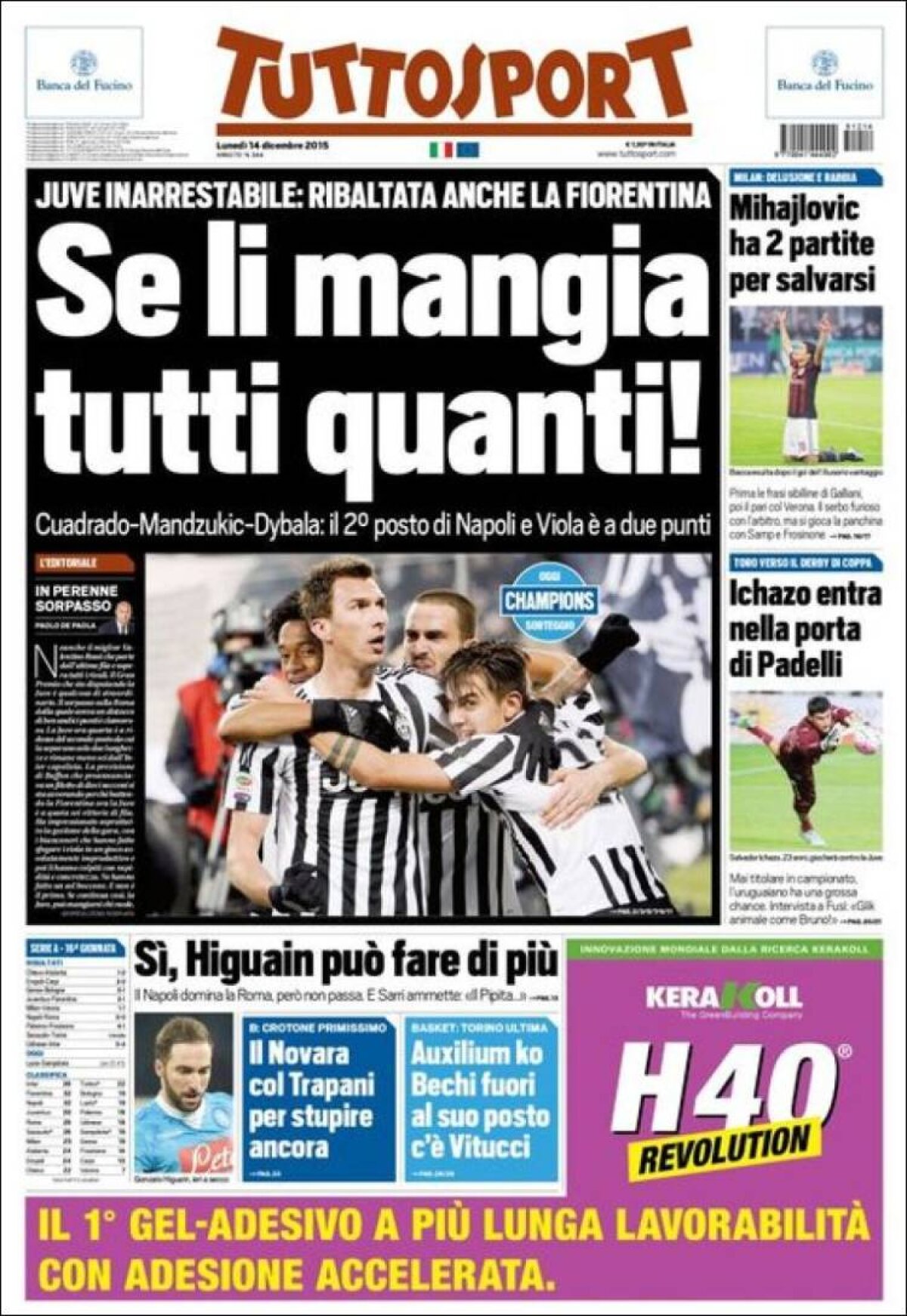 Ce scriu azi ziarele de sport din lume (14 decembrie 2015)