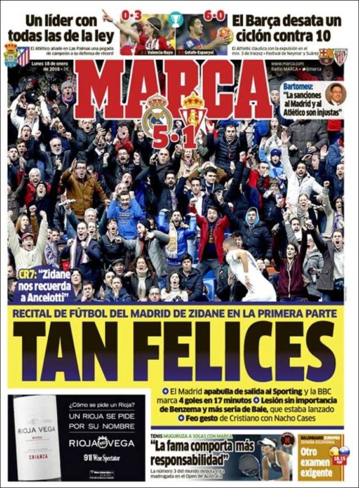 Ce scriu azi ziarele de sport din lume (18 ianuarie 2016)