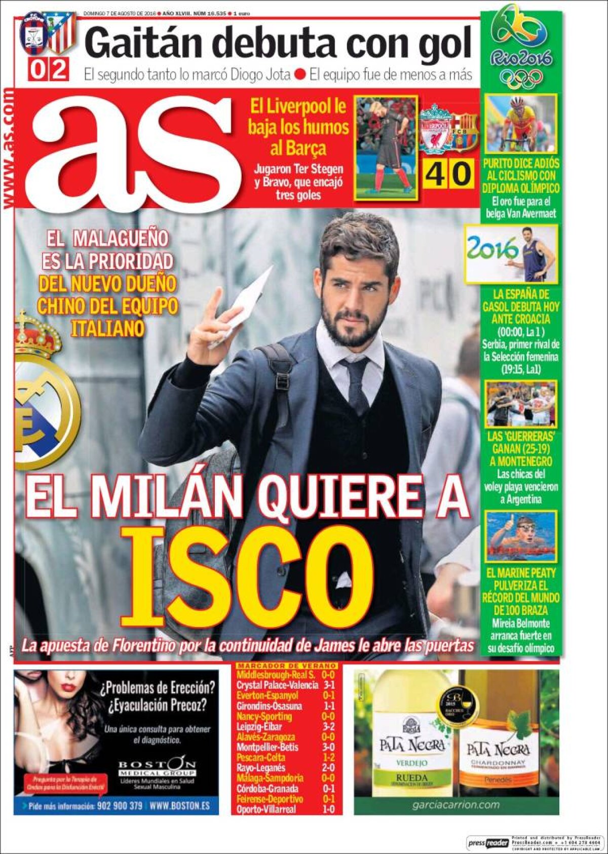 Ce scriu azi ziarele de sport din lume (7 august 2016)