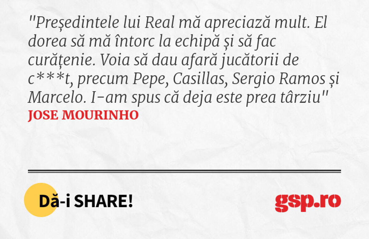 Foto 10/50 : Președintele lui Real mă apreciază mult. El dorea să mă întorc la echipă și să fac curățenie. Voia să dau afară jucătorii de c***t, precum Pepe, Casillas, Sergio Ramos și Marcelo. I-am spus că deja este prea târziu