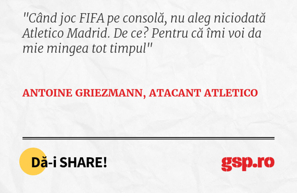 Când joc FIFA pe consolă, nu aleg niciodată Atletico Madrid. De ce? Pentru că îmi voi da mie mingea tot timpul +50   FOTO